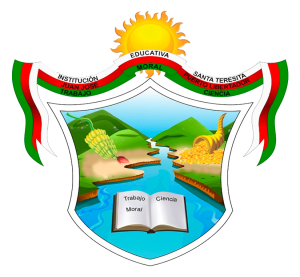 EL ESCUDO de la Institución Educativa Santa Teresita está formado por un blasón de forma regular, arriba en la parte externa del escudo aparece radiante el sol de la libertad, que descansa sobre el emblema BLANCO, ROJO Y VERDE, que conforma nuestra bandera INESALISTA con el nombre de nuestra institución, en hilos de oro. En la parte interna del escudo se encuentra al corregimiento de Juan José en las riberas del alto San Jorge, evidenciando la belleza del paisaje caracterizado por la exuberante vegetación, su fauna y flora, numerosa y variada.